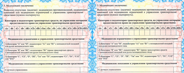 В бланке при этом появились поля с новой информацией. Это таблицы с указанием всех возможных категорий (раньше было только 5), с перечнем ограничений к вождению отдельных видов транспорта, с обозначением дополнительных условий для управления транспортом (например, использование приборов, корректирующих зрение). Вместо места жительства в водительской справке нового образца теперь вносится место регистрации.